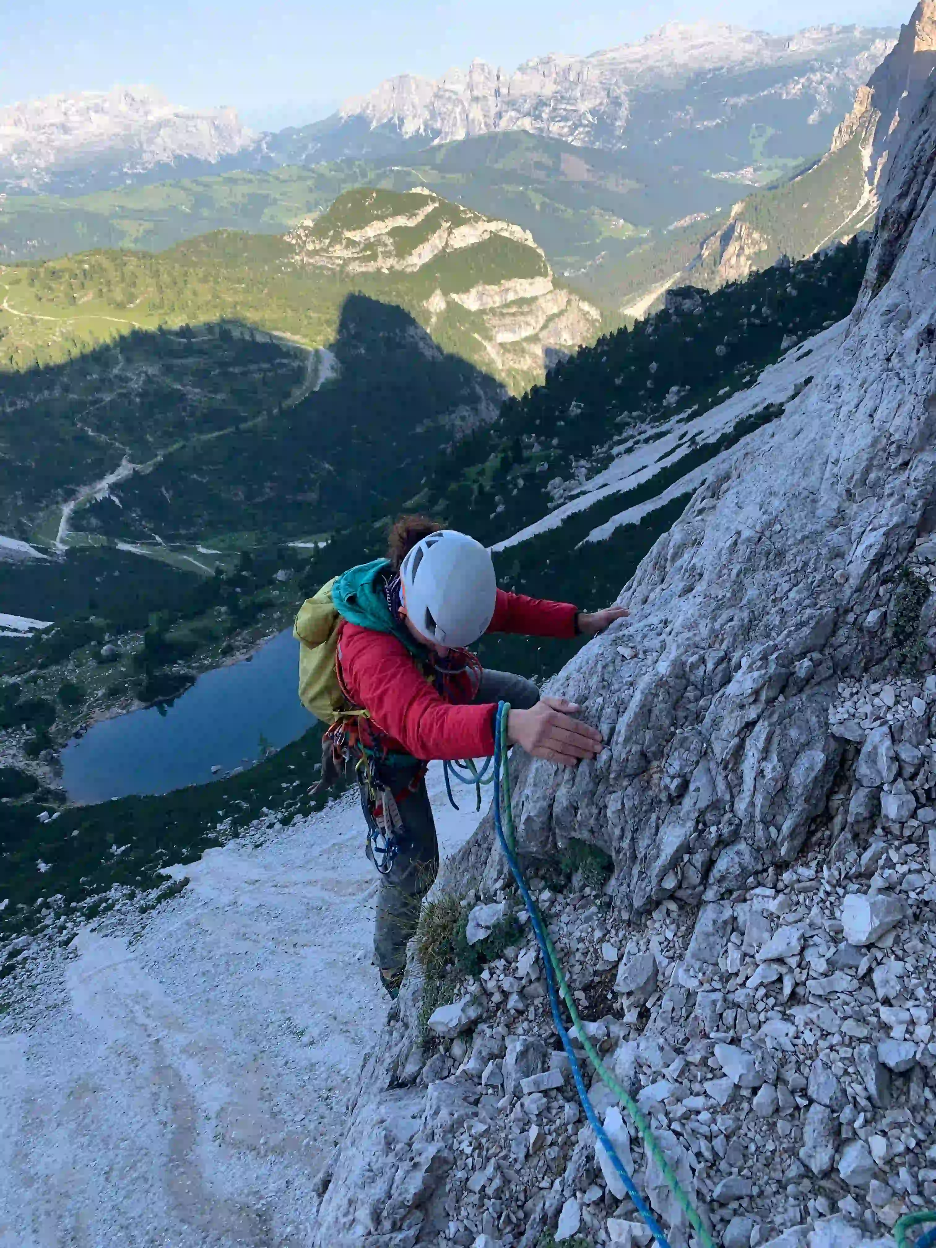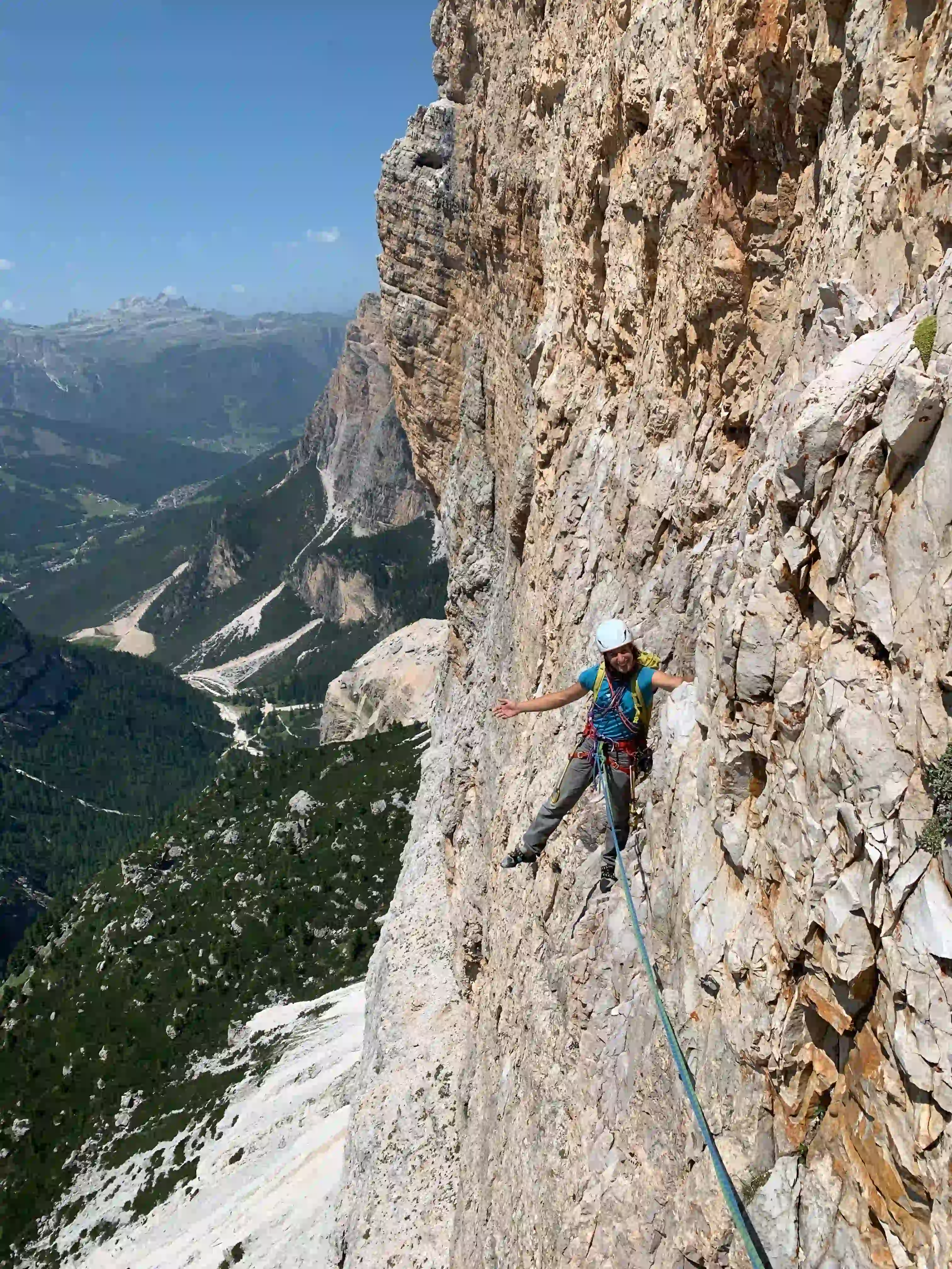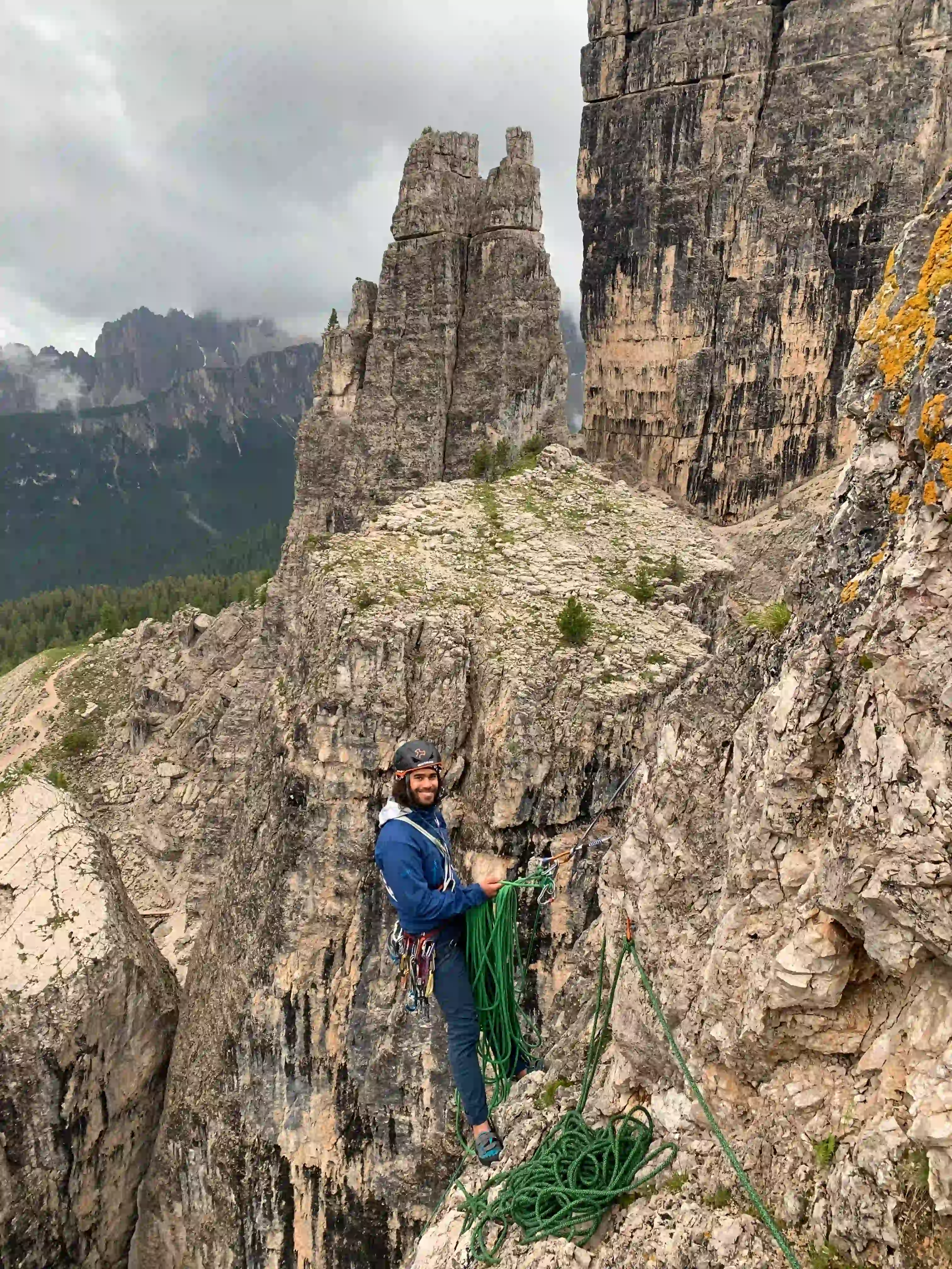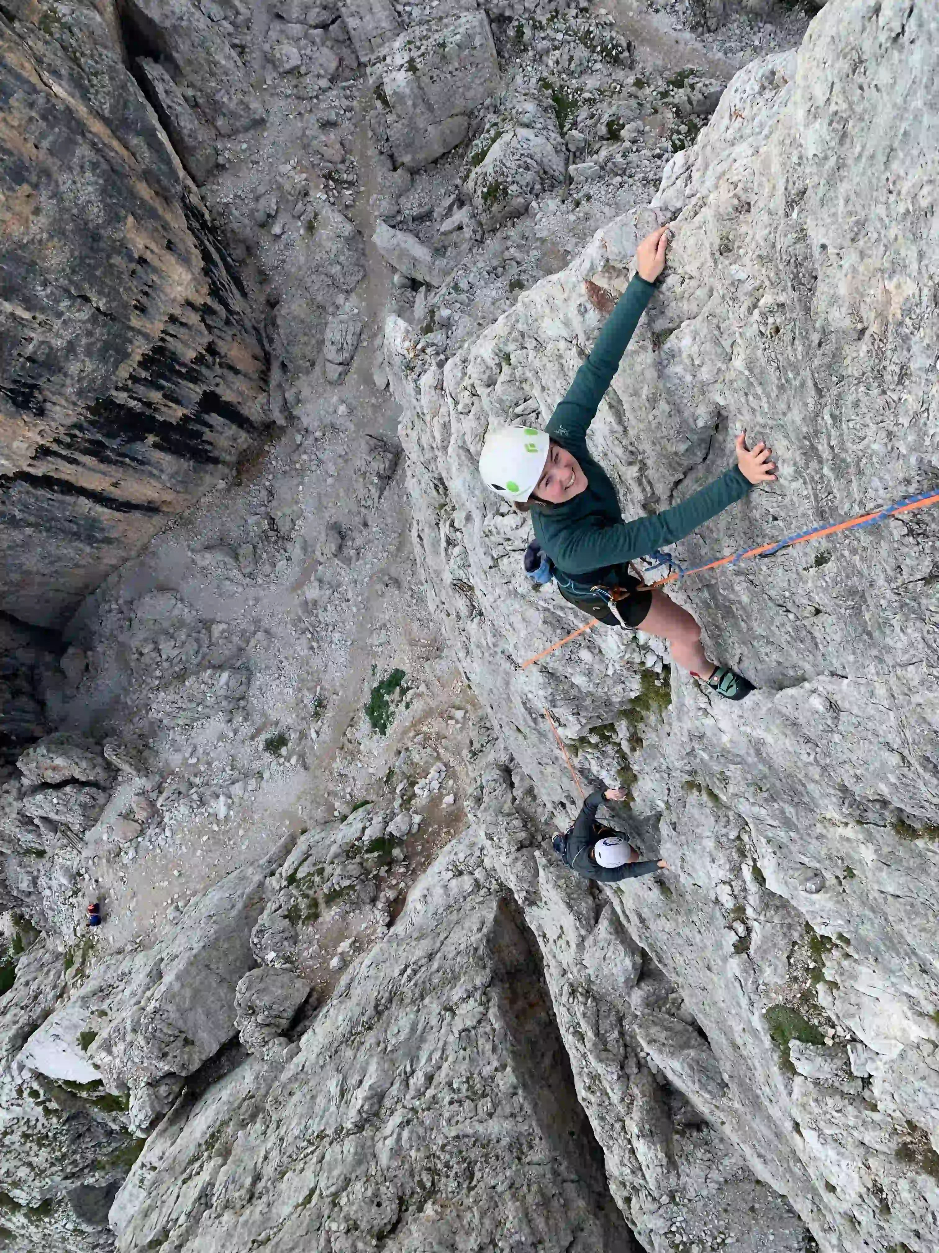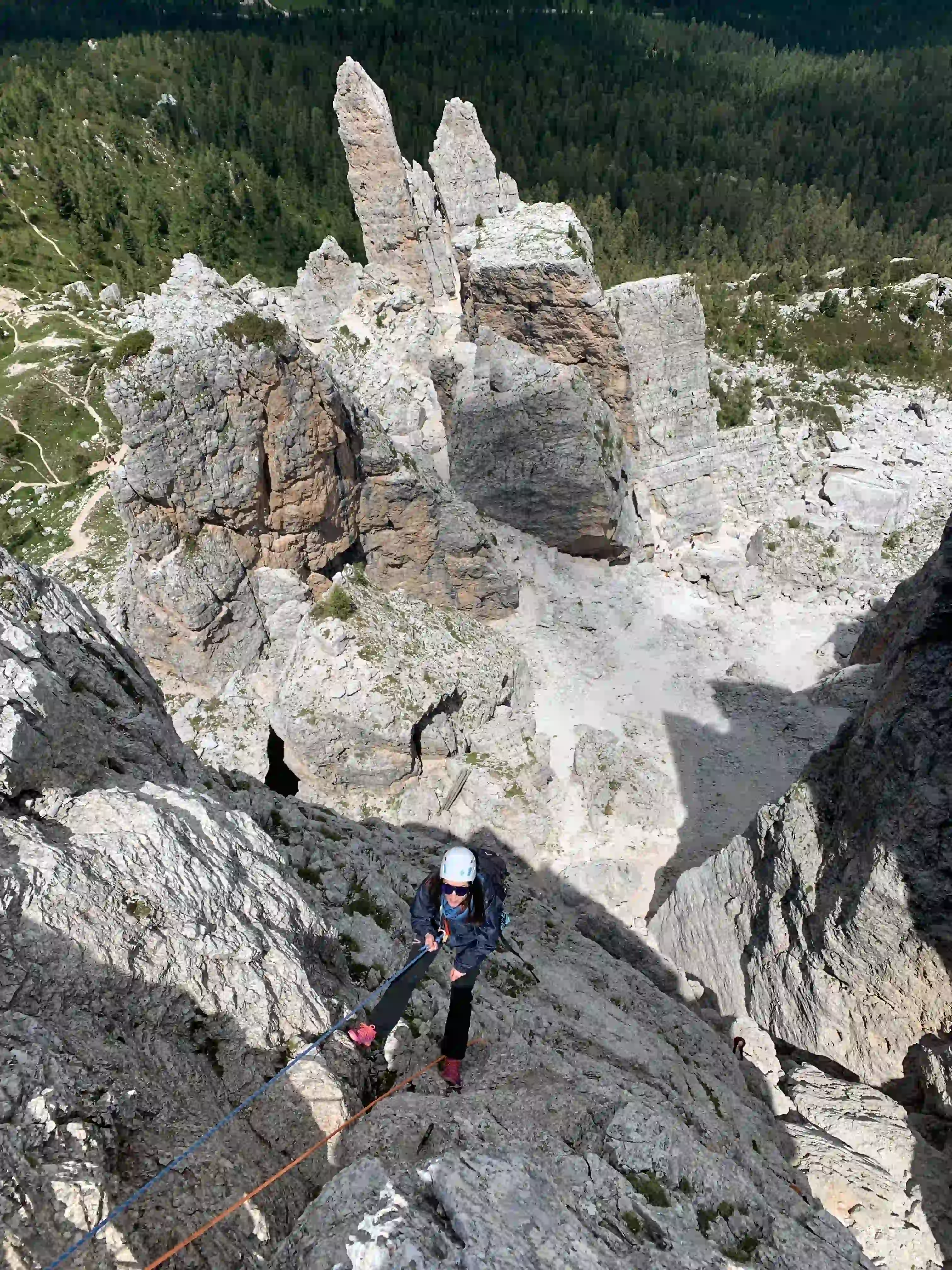Der Kleine Falzarego Turm bietet einige tolle Klettertouren im vierten Grad. Dabei kann man gut zwischen verschiedenen Touren switchen und sich die schwierigkeit „aussuchen“. Der Gipfel ist spektakulär und im Abstieg wartet ein toller Abseiler auf uns.