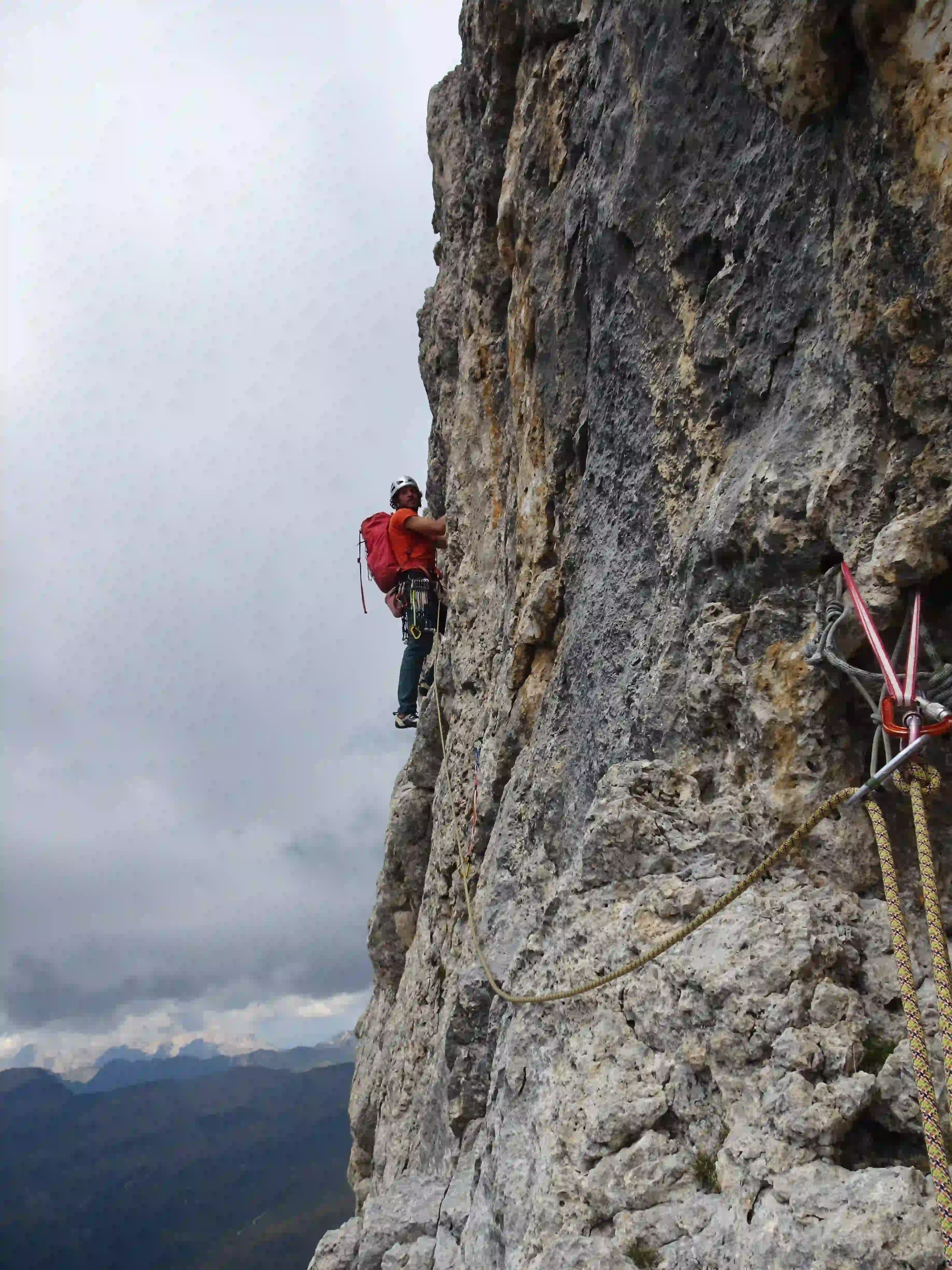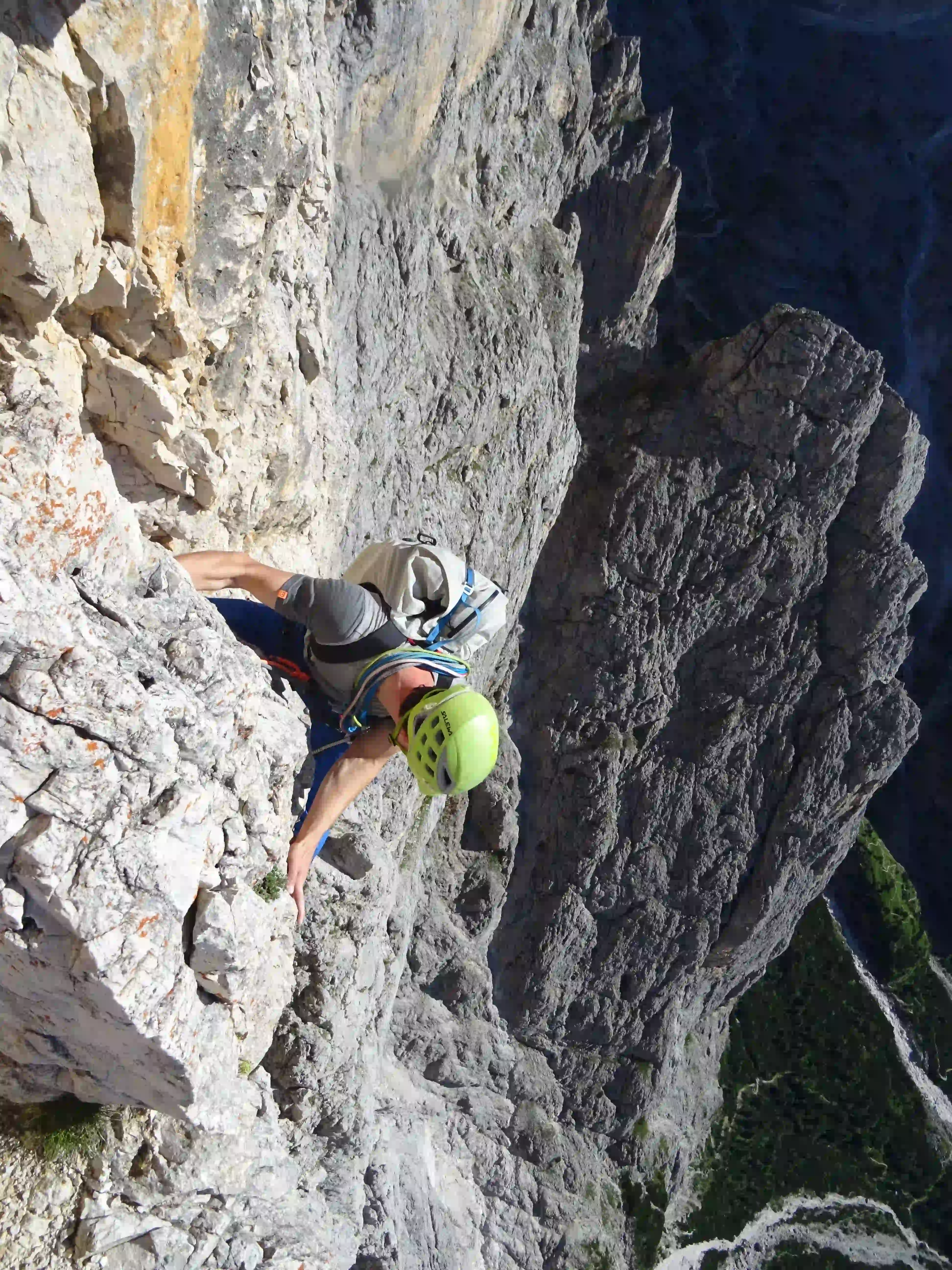 Würde man es nicht besser wissen, würde man meinen man klettert hier an der Marmolada Südwand. Feinster Kalk und Paladolomit auf einer durchaus anspruchsvollen Klettertour