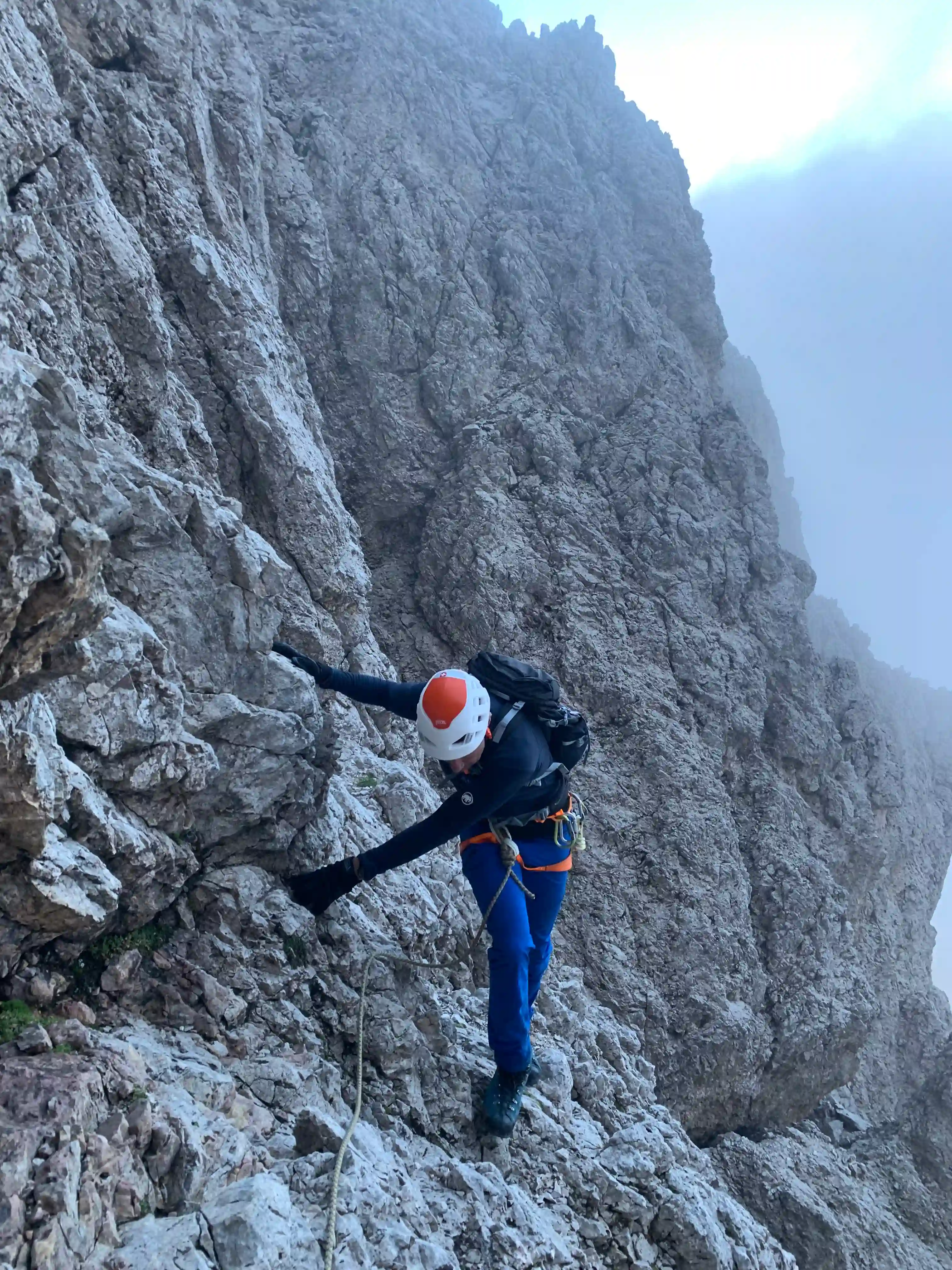 Die Route ist lang und teilweise unübersichtlich. Besonders bei Nebel oder wechselhaftem Wetter ist eine gute Orientierung entscheidend. Der Gipfelerfolg wird mit einem beeindruckenden Rundblick auf die Dolomiten belohnt – ein echtes Highlight für jeden Alpinisten.