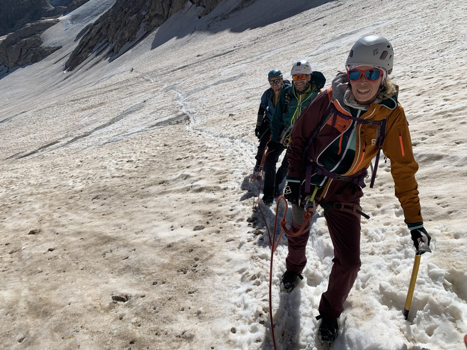 Gesichert wird vorwiegen am kurzen Seil, deshalb werden an den meisten Normalwegen maximal 2 Personen geführt.